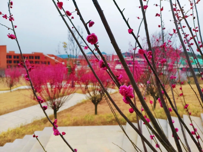 其间穿插着樱花与红梅的枝桠