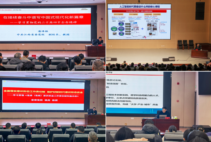 培训邀请了省委党校副校长潘泽林、教研处处长姚亮,哈尔滨工业大学教授战德臣,江西师范大学研究员严楠等专家围绕全会精神、意识形态、合格评估、产教融合等方面进行授课。通过此次培训让党员、干部进一步统一思想、凝聚力量,以奋发有为的精神状态和扎实过硬的工作作风,奋力开创学校事业发展新局面。