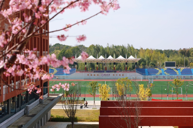 体育场边,教学楼旁