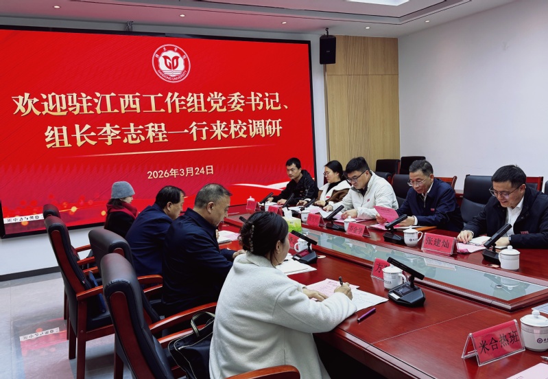 3月24日下午,新疆驻江西工作组党委书记、组长李志程一行来我校走访调研。校党委委员、副校长茶金学陪同,学生工作处、保卫处、辅导员代表和学生代表参会。