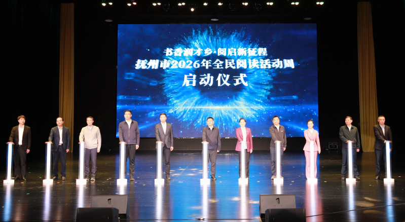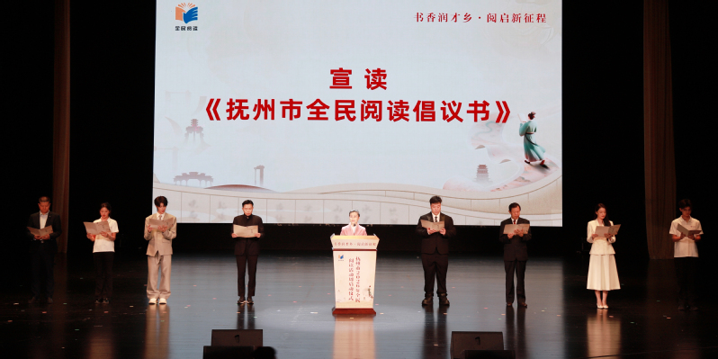 中央广播电视总台播音指导和佳宣读了《抚州市全民阅读倡议书》。随后,与会领导嘉宾共同按下启动键,标志着抚州市2026年全民阅读活动正式启航。